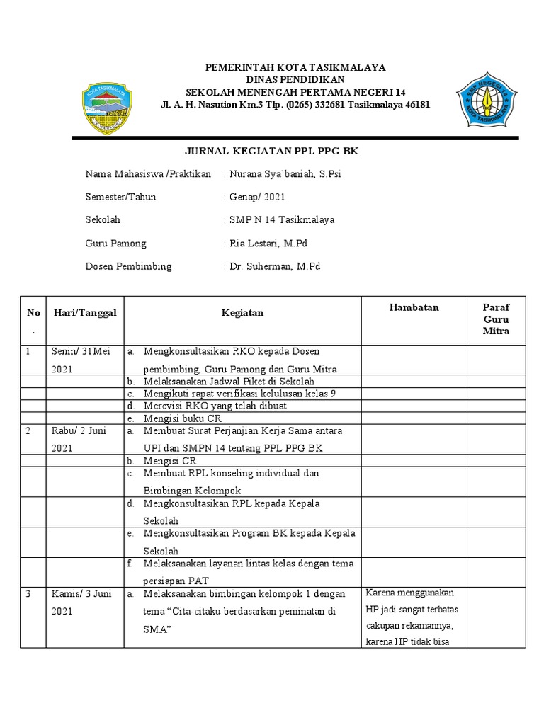 Contoh Laporan PPL HALAMAN PENGESAHAN. Download View Contoh Laporan Ppg 1 as PDF for free. Pada PPL 1 ini praktikan mendapatkan pengetahuan baru mengenai praktek langsung di lapangan.